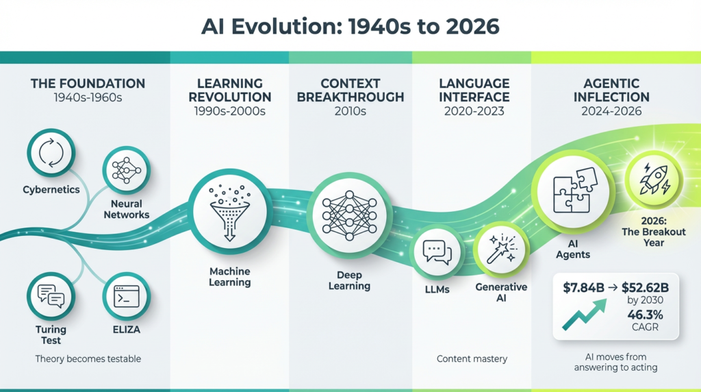 Agentic AI evolved from 1940s feedback loops to 2026’s billion-dollar reality